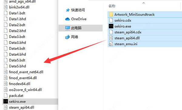 2、然后把破解补丁里面的全部文件,复制到游戏根目录中(sekiro文件夹);