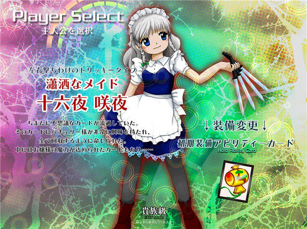在红魔馆担任女仆长。她平时总是镇定自若的样子,所以很难看出她其实有点天然。