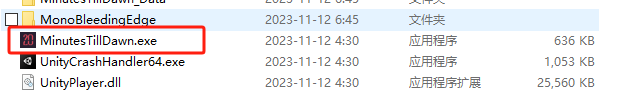 1、下载并解压压缩包,双击MinutesTillDawn.exe执行游戏;