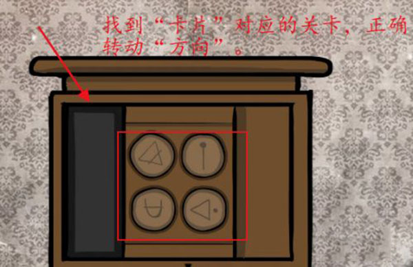 3、第三步,找到“卡片”对应的关卡,正确转动“方向”。