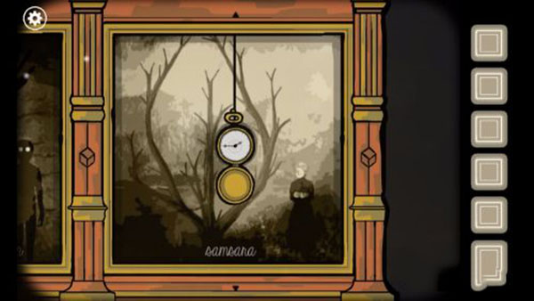3、进入到地下室内部,我们可以看到三个壁画,把怀表按照花纹,放置到三个壁画中心后开启,可以看到时间,根据时间调整时钟。