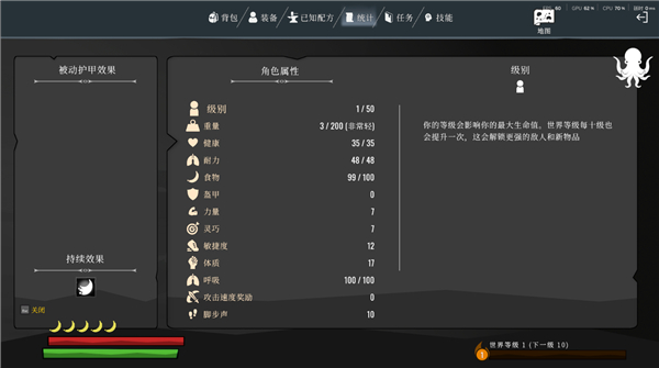 食物相较于英灵神殿有些类似,持续效果一栏最多四种状态,饱腹占一栏,床效果一栏,剩下的两栏是药水和食物。