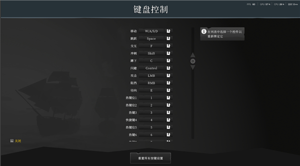 经典WSAD,shift奔跑,左键轻攻击长按重攻击,右键格挡蓄力,长按E快捷栏。