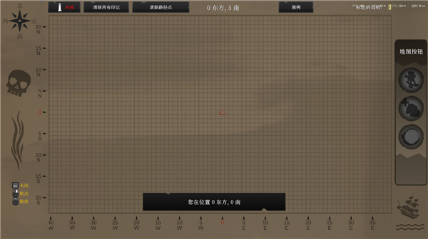 六分仪按右键对准太阳辨别方位后就可以在地图上显示自己的位置,注意,只有在用六分仪确认过自己位置后地图上的红色标点才会更新。