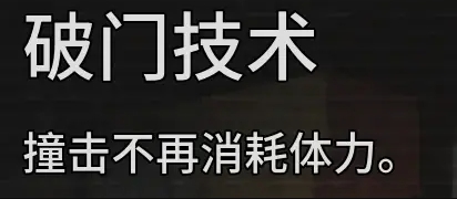 7、奔跑撞门—使自己在奔跑时能够打开门,但会破坏被锁上的门。