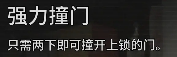 2、强力撞门—所有锁定的门只需要两下即可破坏。