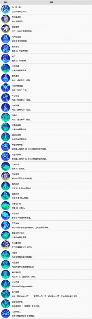 阿凡达潘多拉边境总共有32个奖杯,其中包含12个铜杯、15个银杯、4个金杯、以及1个白金杯。如下图。