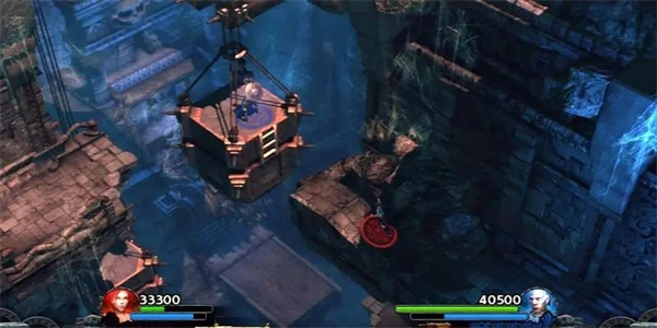 双人合作:灵活的劳拉和壮实的托泰克很好地形成互补,劳拉有钩锁、手枪、传奇的身手,而托泰克虽然灵活性较差,但更为强大,装备着盾和矛。这样,在关卡的全程,自然就需要这两个人互补性的合作,例子到处都是。比如劳拉可以爬上托泰克的盾牌到达高处,然后用钩锁将托泰克吊上来。也有的时候,是托泰克不断扔出长矛,为劳拉搭建通往目的地的阶梯。游戏中如果一个角色死了,另一个可以通过牺牲自己的血来复活同伴,但有时间限制。