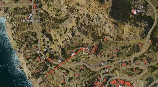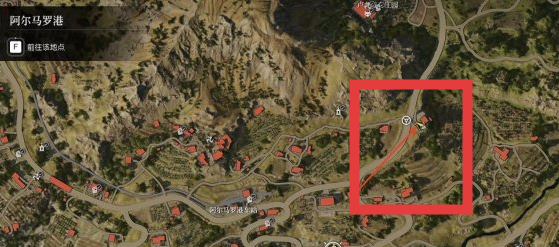 1、位置在阿尔马罗港北边位置,也就是“逃犯落网报纸”的对面,继续往北一点的位置。