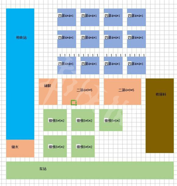 厂区大小,因为一个铀矿目前版本的最大产能是600单位每分钟,直接按照完全消耗500单位铀矿每分钟来计算出需要的设备数量,产能,耗材需求,然后根据设备的占地去规划地皮大小。