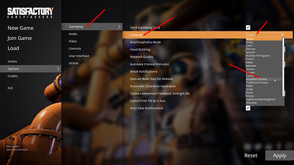 5、一次执行gameply-language-simplified chinese,点击apply即可设置为中文