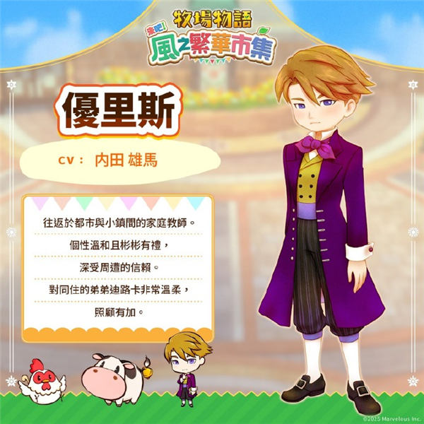 牧场物语来吧风之繁华集市是一款模拟经营游戏,作为《牧场物语》系列新作,本作以煦风镇为故事起点,开启牧场经营、集市复兴之旅。玩家将在游戏中经营牧场,种植各种农作物,从耕种、播种、浇水施肥,到周六在市集上贩卖作物,展开悠闲的牧场生活。