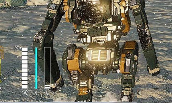 最右边的是热量条,开火或者进行一些高消耗的行动的时候,热量就会增加,如果增加到极限,