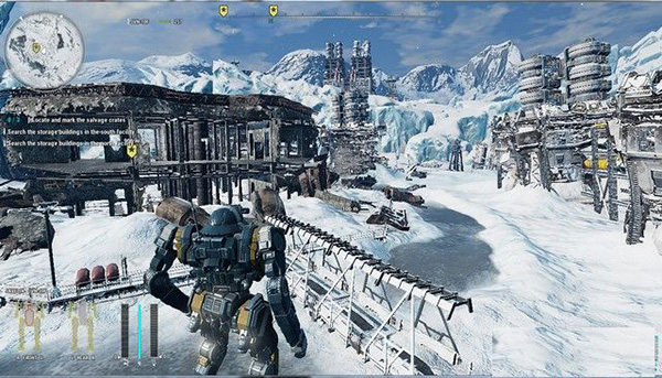 6、装甲的损耗程度看HUD左下的线框。线框没了就是机体结构承受伤害了。机体结构比装甲脆弱的多,没装甲的部分很容易被拆解。