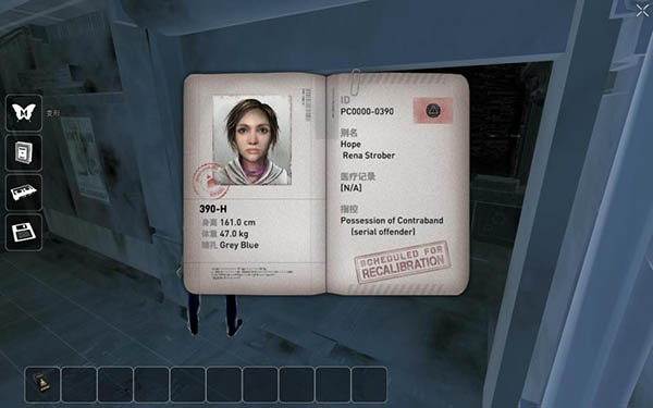 禁书、录音带、游戏盒,这三种收集品只能让霍普收集,在摄像头中没有图案提示,但是该物品在骇入视角中是显示为军绿色。这一类收集品多数出现在流程关键的位置,尤其是地图上显示的目标地点位置(黄圈)。