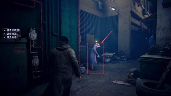 2、在小巷中发现神秘老太太,边上还有物品可以收集。