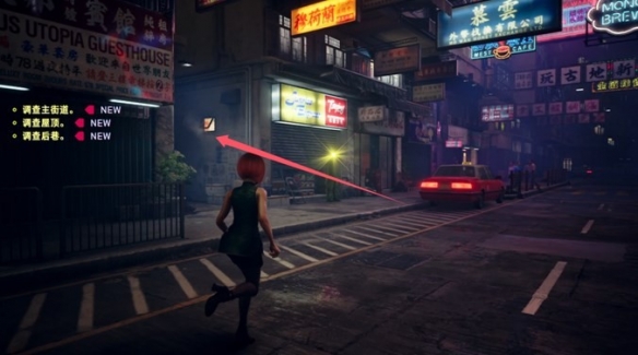 1、进入苛壓戰線2nd loop关卡,来到主街道上,找到肥龍麵家的灯牌,跳到楼顶上去。