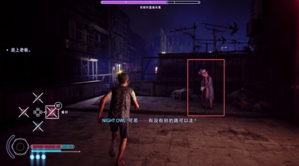 2、先跟着剧情走,去天桥上触发银月剧情,这样才能上楼顶,找到老太太。