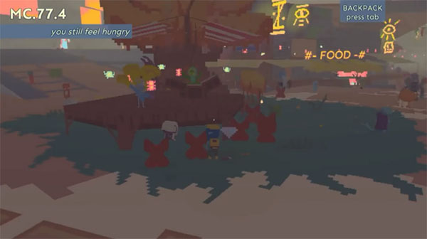 2.那个星球城市的环境、建筑和市民,在短暂十几秒 GIF 里得到了生动展示。你可以看到晨昏轮回、阴晴变幻,看到小巷、后街、广场、桥梁和店铺,看到形形色色、奇奇怪怪的市民行走往返。游戏用立体像素的 3D 风格,构造了一个无缝连接的城市,将酒吧、银行、商店等各式建筑和长耳朵的兔子,漂亮的蝴蝶夫人、电视头机器人等各色市民,一一填充进去,加上天气光影,让一切在这个世界里运作开来,人们来来往往,走走停停,闹市街头永远熙熙攘攘、人头攒动,更别提在为期九天的一周的最后一天,所有人都会上街集会、玩乐、唱歌。间或巨大的飞艇在空中划过,留下一条炫目的光带。城市在自然流动变化,生活显得琐碎而真实。