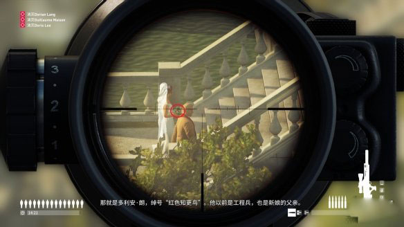 首先以最快速度打掉新娘手里捧的花,这里可以在新娘脚边开一枪让其停下来再寻找机会。