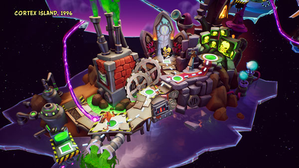 上面的文字都是对游戏内容“量”上的介绍,下面再来说这些内容对于“质”的表现。首先,游戏的故事基于“时空穿越”的题材,这给开发者在关卡设计上提供了丰富的拓展空间。十大世界(或者说是次元),每一个世界都对应着一个鲜明的主题,玩家将与古惑狼穿越到各个时间点,体会该时间点下所塑造的世界。