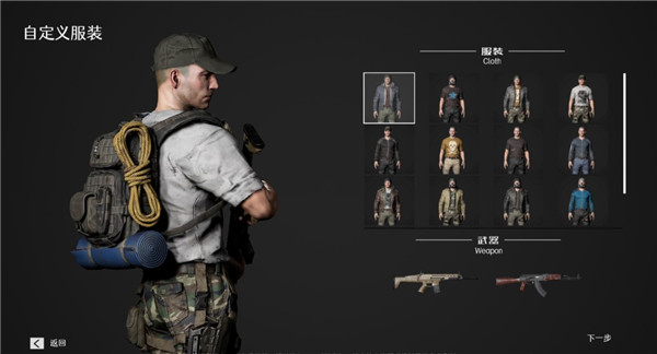 2、进入服装和武器选择界面并点击下一步