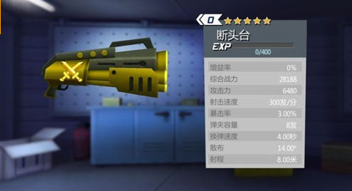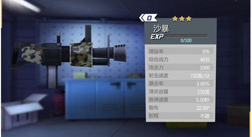武器升级会增加武器的攻击力、攻击速度、弹夹容量、换弹速度中的三项,不同类型的武器升级的项目也不同。