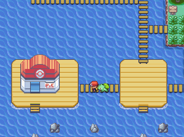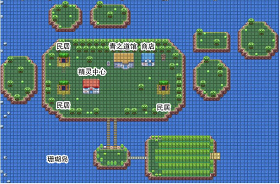 3.打败道馆后,来到河边按【空格键】使用沼蛙跳来到对岸 之后一路来到蓝之镇