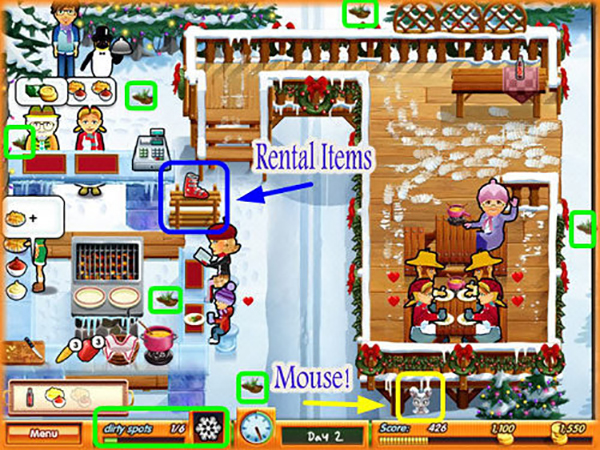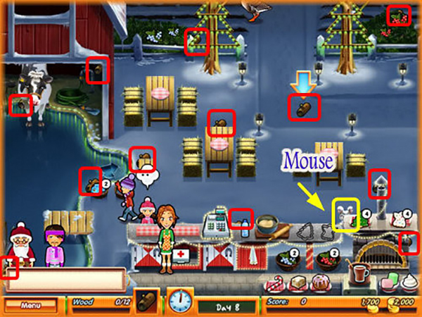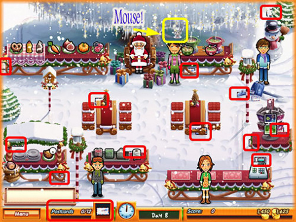 3、场景以圣诞节的雪天为主,贩卖食物让顾客感受到餐厅的温暖,新元素的不断增加也使内容更加充实。