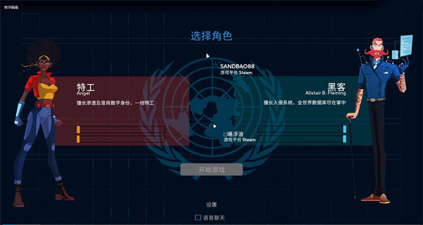 2、输入完邀请码,玩家和玩家的朋友需要一个人选择特工,另一个需要选择黑客进行游玩