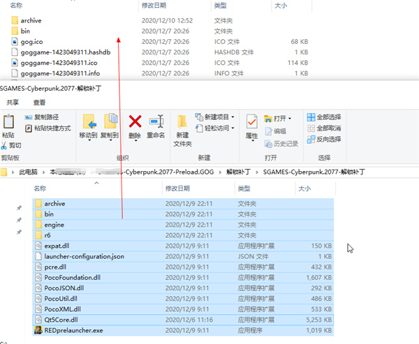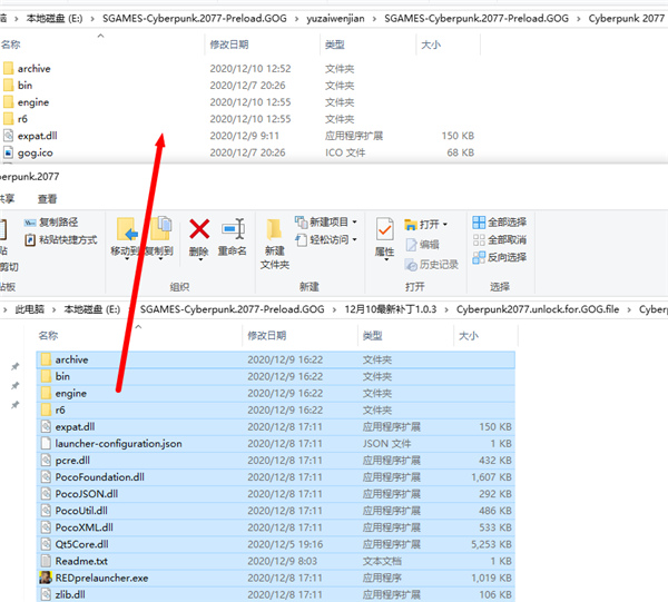 3、然后将解锁补丁内的文件全部复制到游戏根目录下;