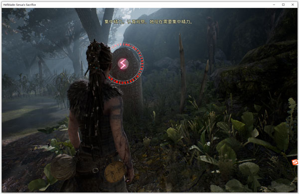 step4.接着要处理符文大门,解决符文大门是要透过“拼图”的解谜方式来打开,塞娜需要先注视大门,记住大门上的符文文字,然后在四周寻找对应词符文文字的物件(形状),一般在对应物件出现的位置附近,塞娜的视野中会出现此符文文字的大量图案幻象(以提示玩家,目标就在附近)。