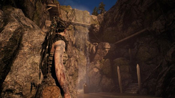step3.塞娜走上石级,爬上木梯后跳往黑尔海姆。