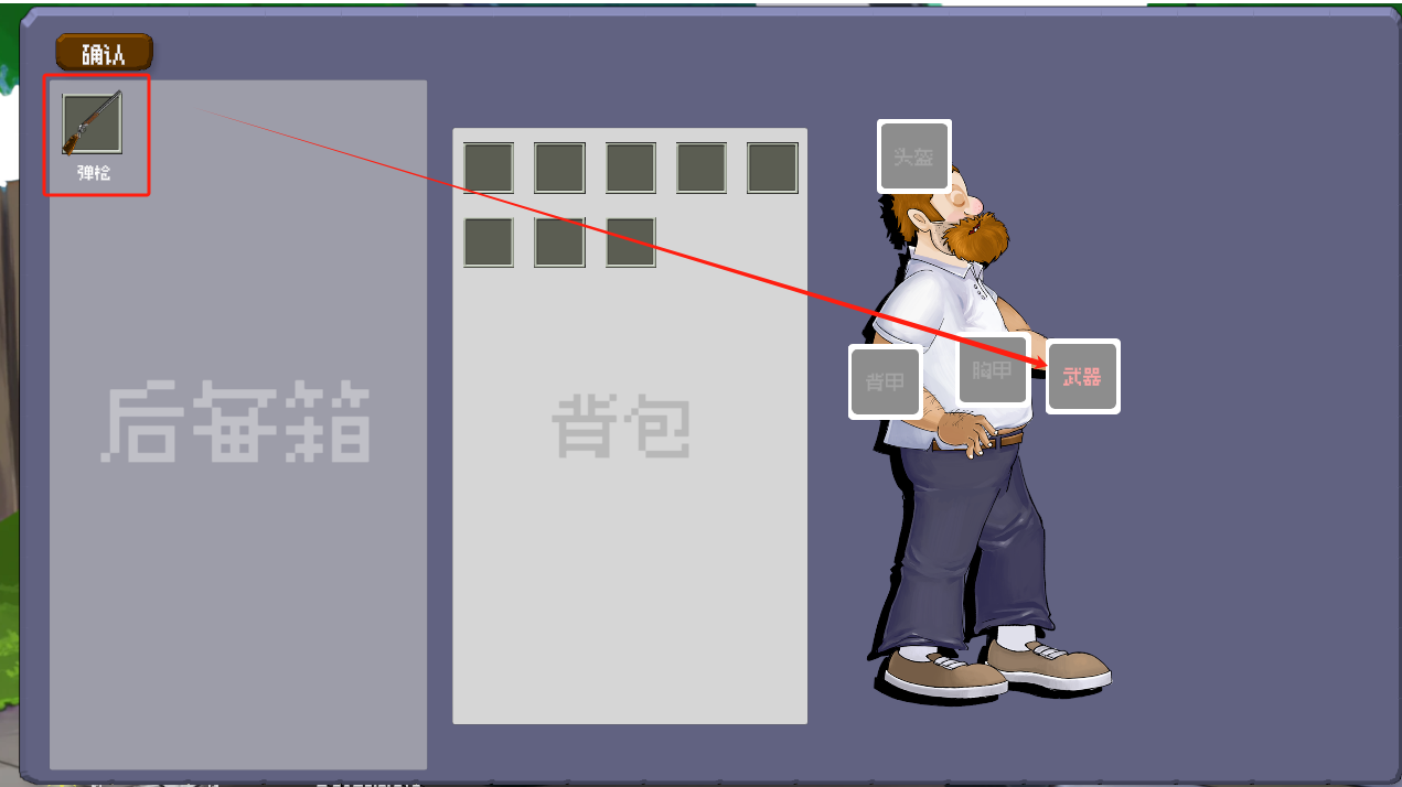 2、将后备箱的“弹枪”装备起来