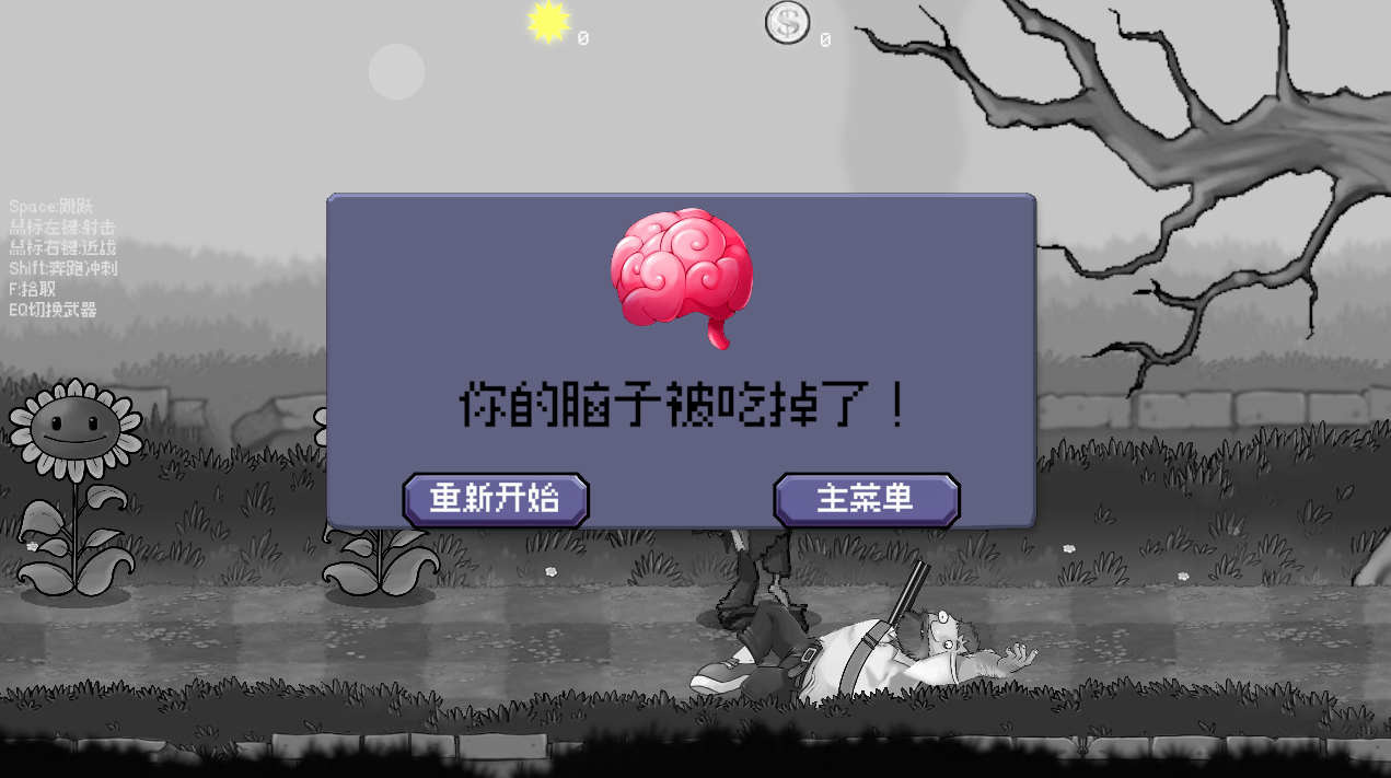 4、戴夫的血量很低,僵尸的伤害很高,一下就会被吃掉脑子,一定要注意躲避僵尸的攻击