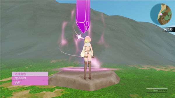 2、在水晶处可以进行角色切换以及岛屿选择。
