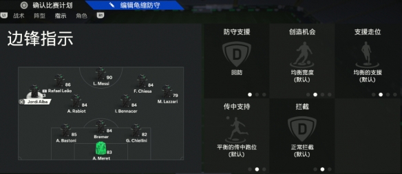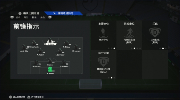 不设置过多的指令是为了球员跑位更加灵活,发挥3421战术板7人进攻的最大威力。