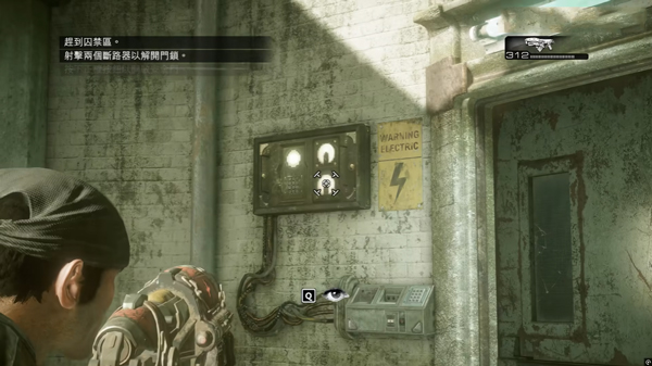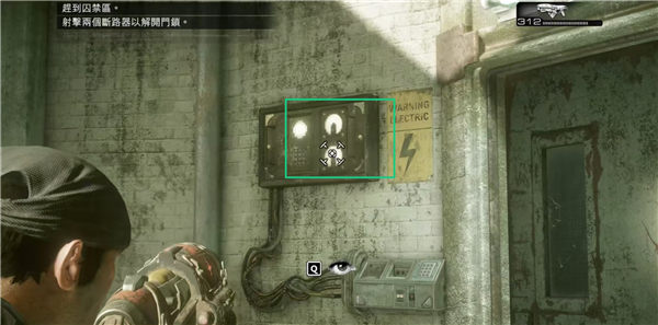 3、来到门前,用枪射击门前和右边的断路器。