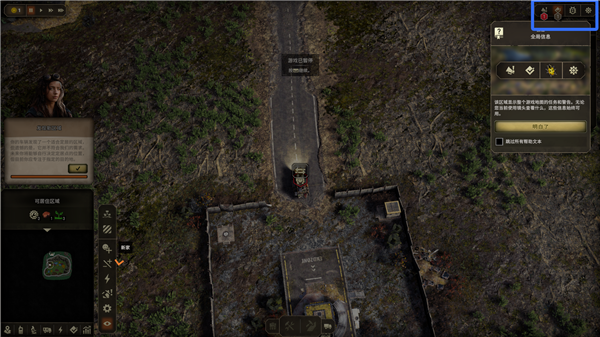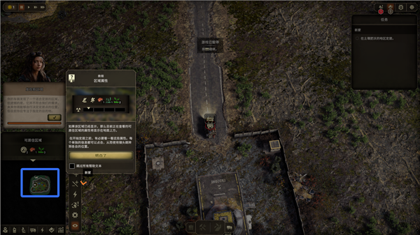 2、右上角显示游戏地图的任务和警告。