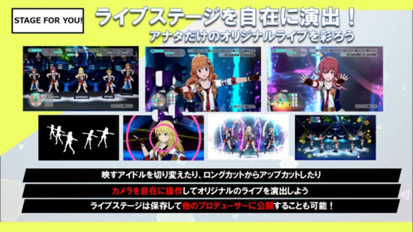 偶像大师星耀季节可以自由地操控镜头,切换不同偶像画面、从长镜头切换为局部特写等,呈现自己原创的演唱会吧。