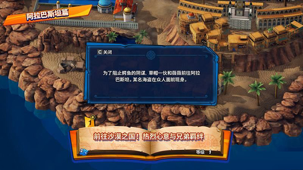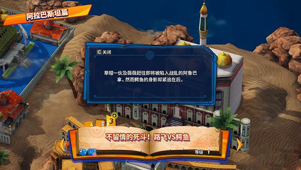 故事模式分六个大章:阿拉巴斯坦,艾斯尼斯大厅,顶上战争,突入新世界,蛋糕岛和原创和之国篇,剧情完美还原动漫中的内容。