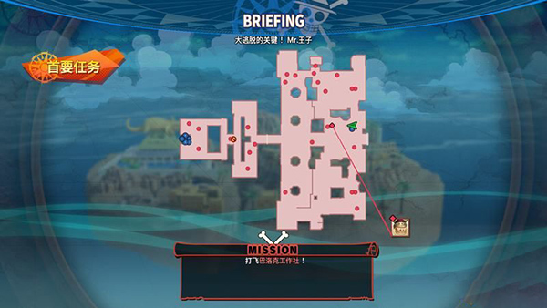 这时山治(没有参与行动)还单独在外面,自称Mr.王子将克洛克达尔引了出去,我们这关就是扮演山治放出路飞众人。