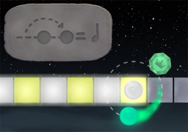 3、单击以控制球以进入右侧的圆圈。一开始会有些困难。按下以跟上音乐的节奏。每次单击重音,它都会控制球沿直线行走。半拍是向上或向下。