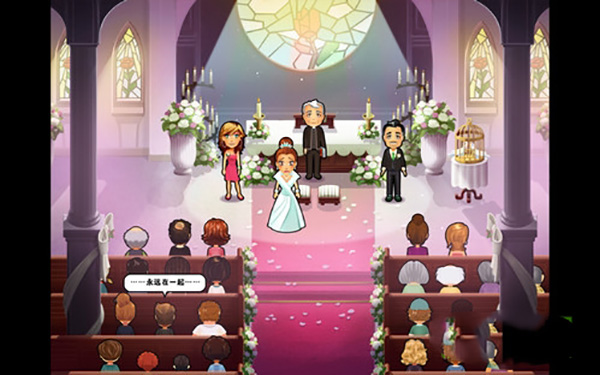 5、可玩性:本作取消了之前的成就系统,改为随着每一集剧情发展而增加的挑战关卡,挑战关卡略难,通过每一关都将寄出一张婚礼邀请函,对应图中的某个人物。除了日常的任务和事件,还有经营餐厅之外,玩家还可以包办艾米莉的婚姻,被艾米莉打造一个梦想中的殿堂。