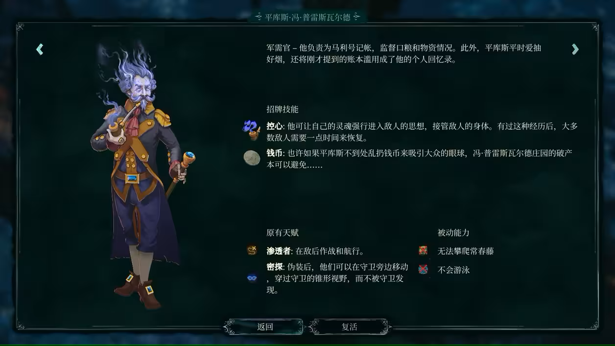 技能升级:控心-升级控心技能,让平库斯可以控制任何类型的守卫。但要让这种技能对预言家发挥作用,你还需要先让预吉家狂躁起来。