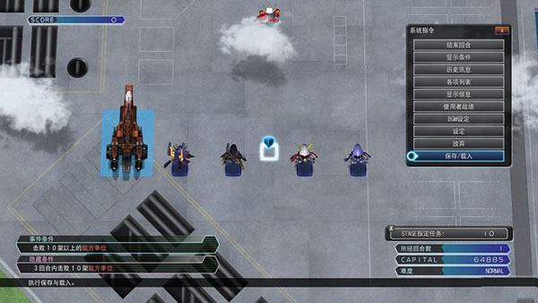 战斗中点击“系统指令”按钮可以保存关卡进度,结束回合等操作也需要在此界面进行,快捷键是空格键。