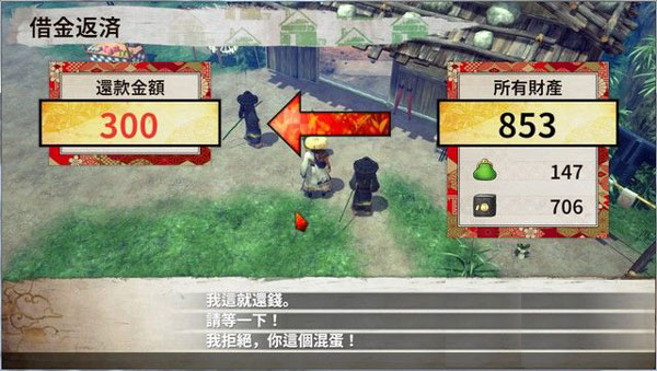 到达规定的天数之后,地主老财就来讨债了,和他对话就可以还钱了。