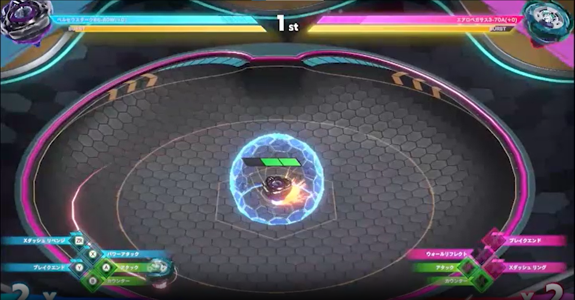 2、当你的攻击命中敌方陀螺时就能使用X 技能,在短时间选择一个合适的时机!