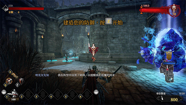 1、抵御防线布置弓箭手、骑士、法师与投石机——为他们选择阵地、升级能力,建立最顽强的抵御防线。