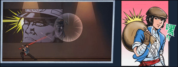 早在2004年的Flash小游戏神影无踪廖添丁里,玩家就能操纵廖添丁利用腰间的跤巾捆绑敌人,而到了2021年的廖添丁中这条白色的跤巾变成了红色的。看上去为廖添丁增添了几分气势!